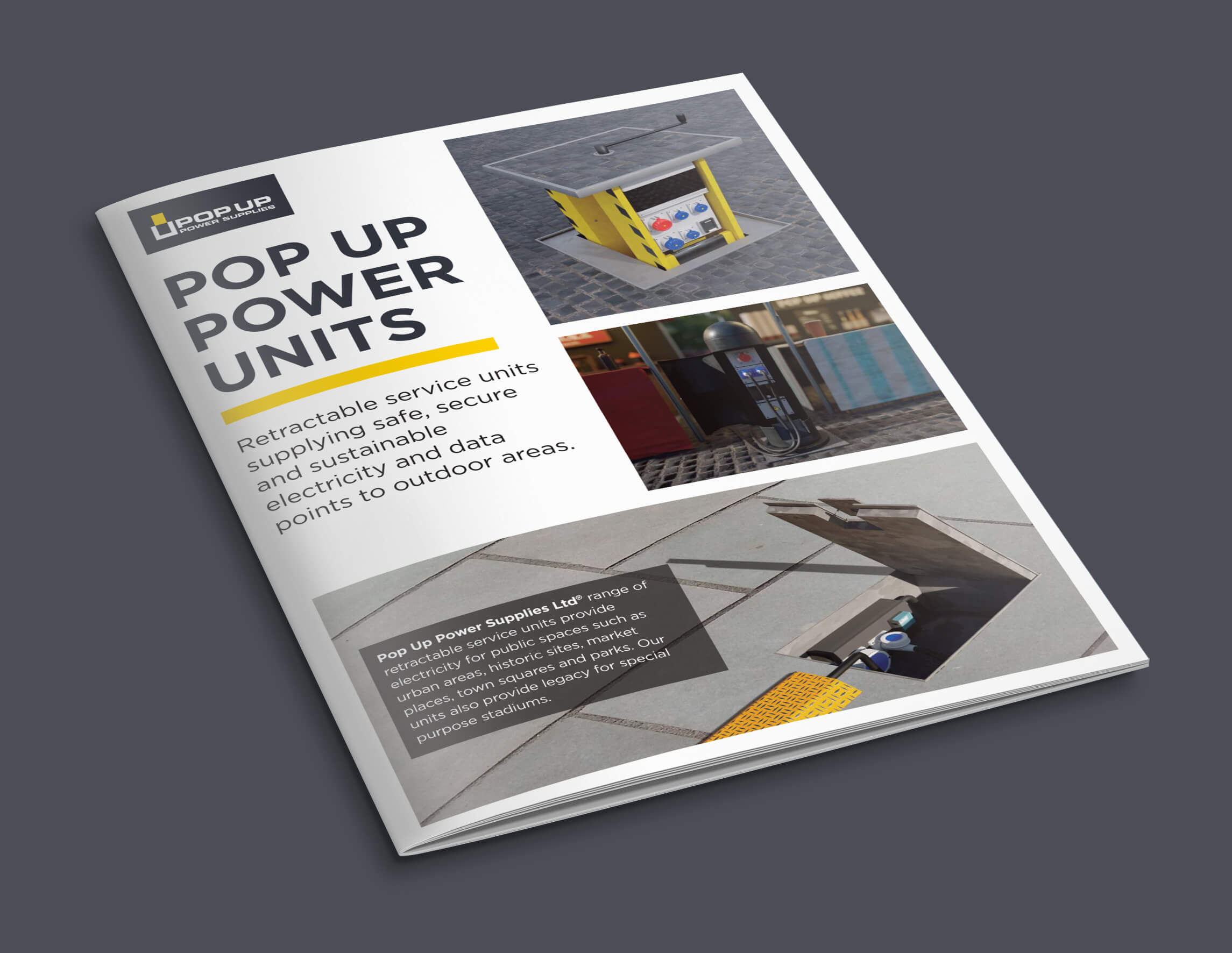 We were commissioned to rebrand and redesign the logo and website for Pop Up Power Supplies—a leading UK supplier of retractable power and data units, cleverly hidden in plain sight across the UK’s cities, sports stadiums, heritage locations, and leisure destinations. These discrete units literally ‘pop up’ from beneath the ground when needed, offering a simple yet highly effective solution.